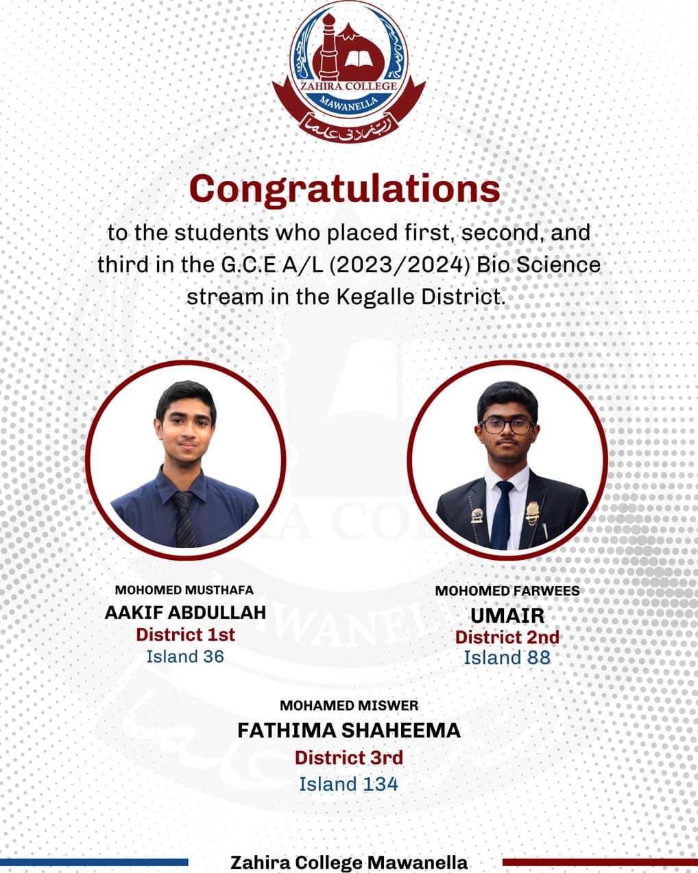 Celebrating Excellence: Honoring our students of Zahira College Mawanella for achieving 3 As in their GCE A-Level examinations. Your dedication and hard work have truly paid off.