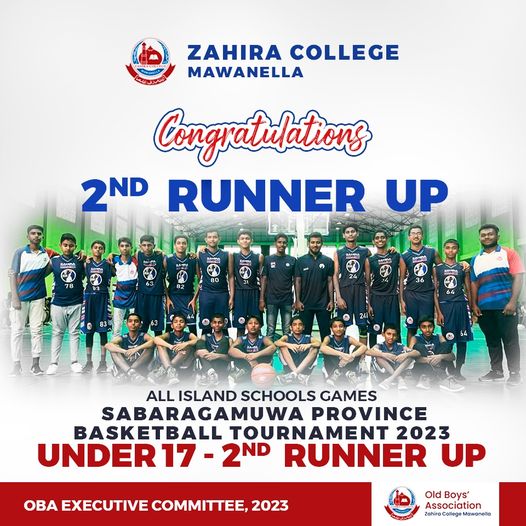 - ,The U17 Basketball team of Zahira emerged as the 2nd Runner-up in the All Island School Games held in the Sabaragamuwa province.